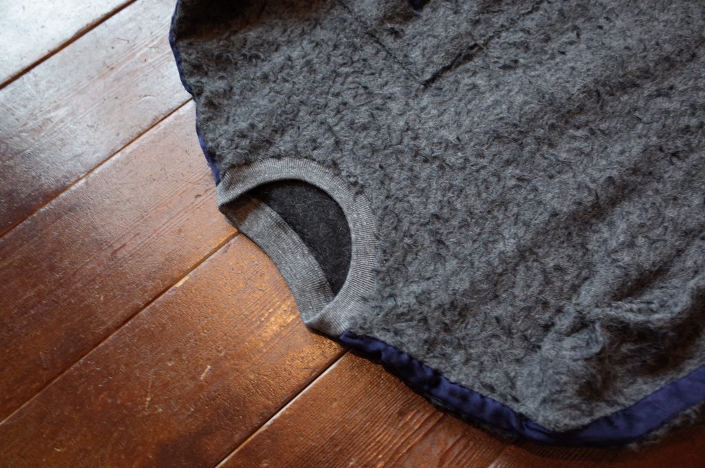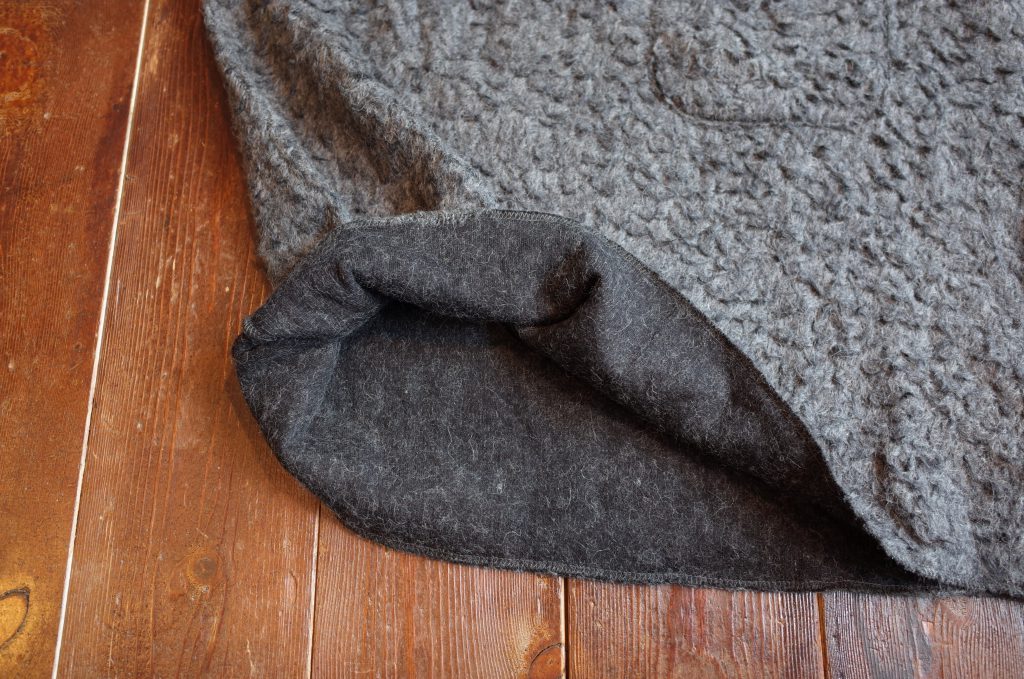 コットン × ポリエステルのベース生地から表面に、ウール × アルパカの毛を出したもじゃもじゃに、