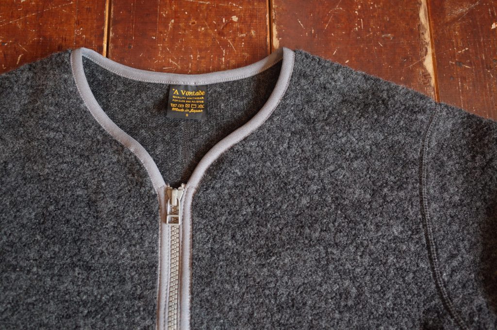 ウールパイルを使用したジップカーディガンです、