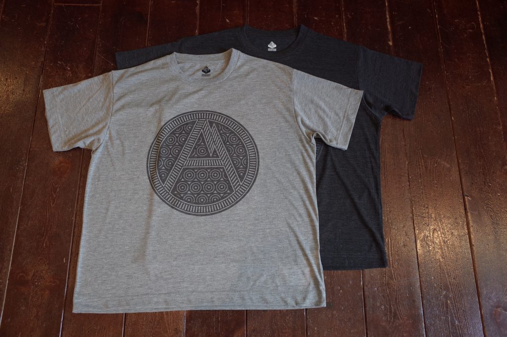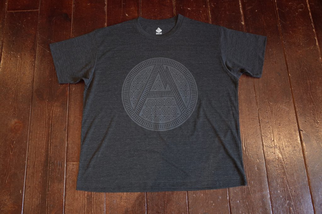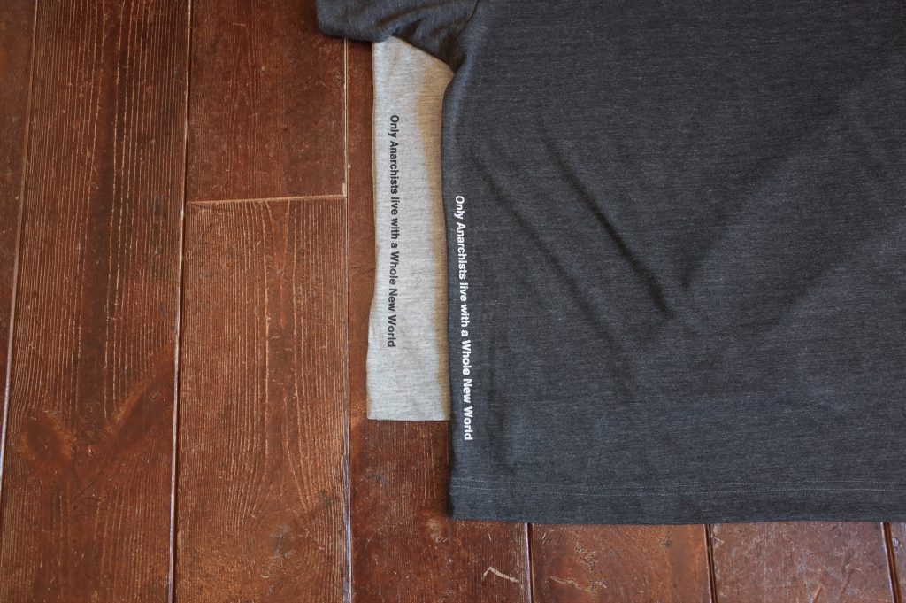 Quick dry jersey wide silhouette Tee with Tribal A and Only Anarchist vertical slogan at left.