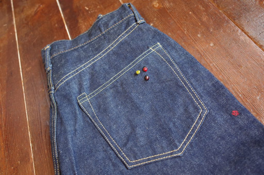 右後ポケット下の「てんとう虫」の刺繍がアクセントです。