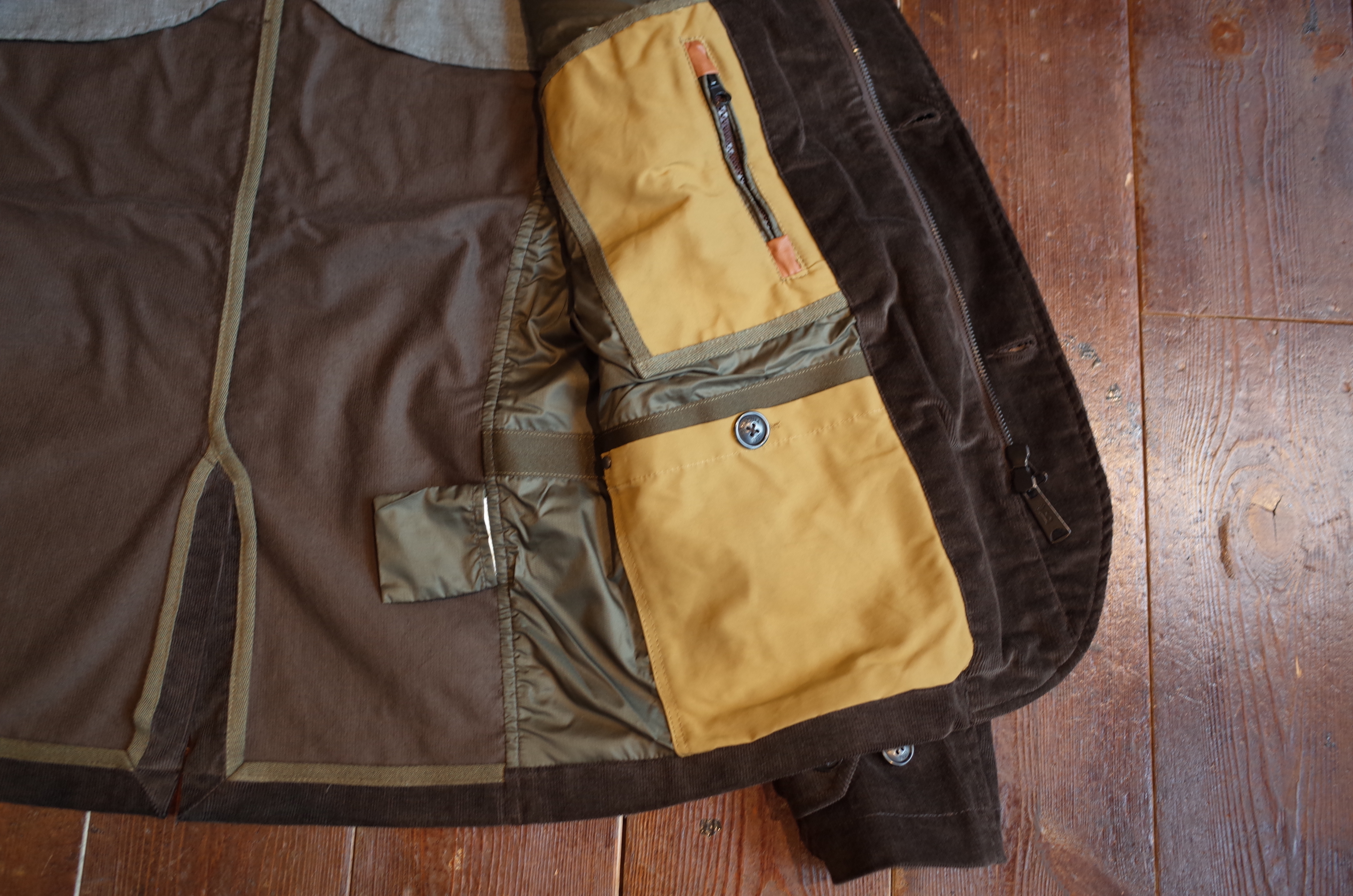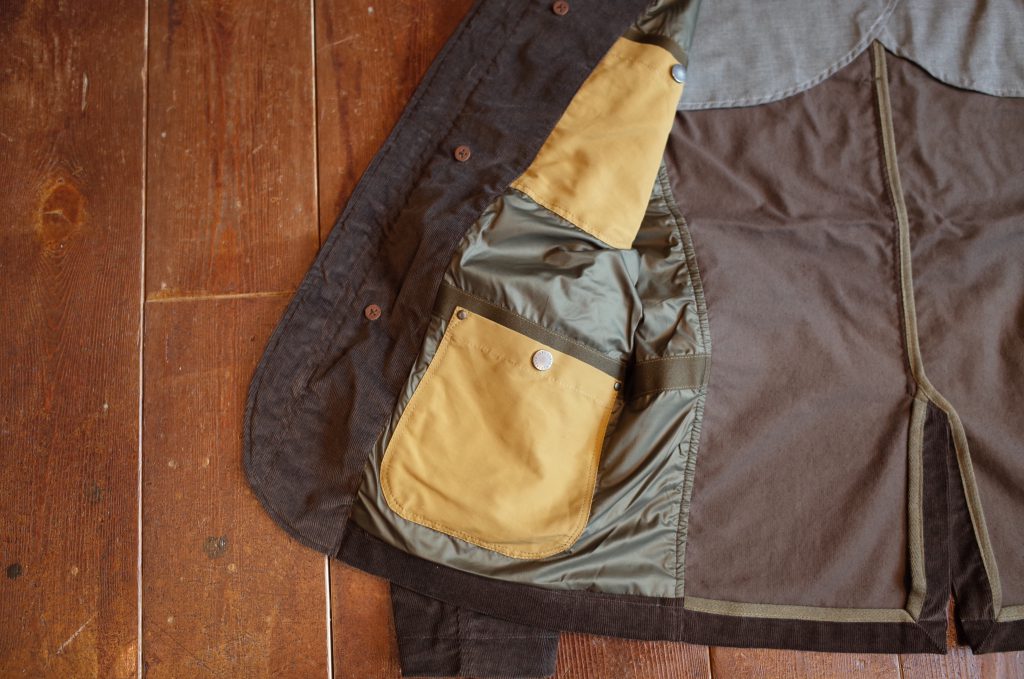 ハンティングジャケットの様な大きいマチ付きポケットに、
