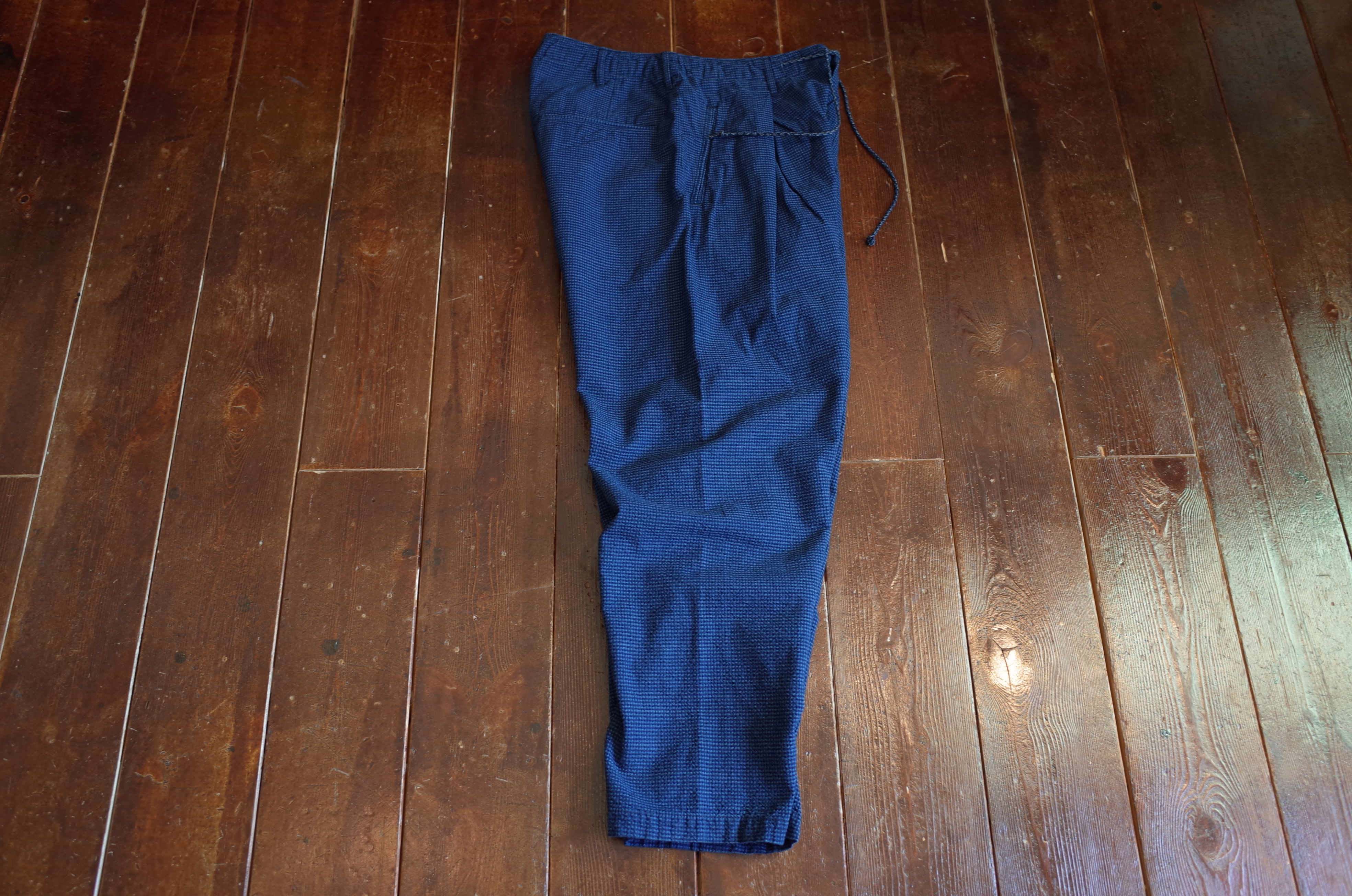 ウインドウブレイカー調、裾のドローコードまでインディゴ、