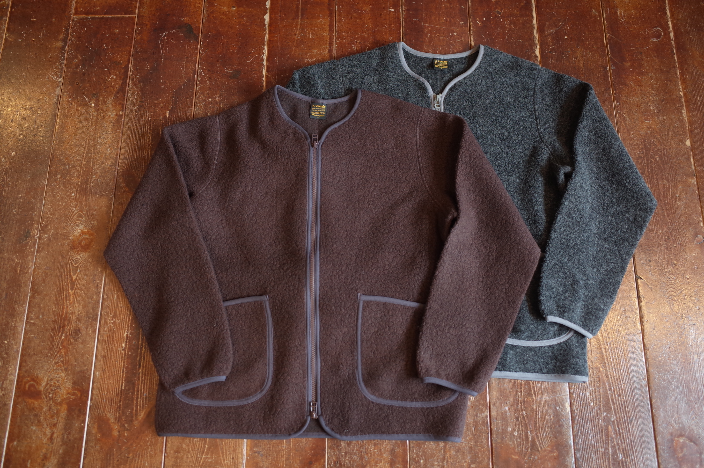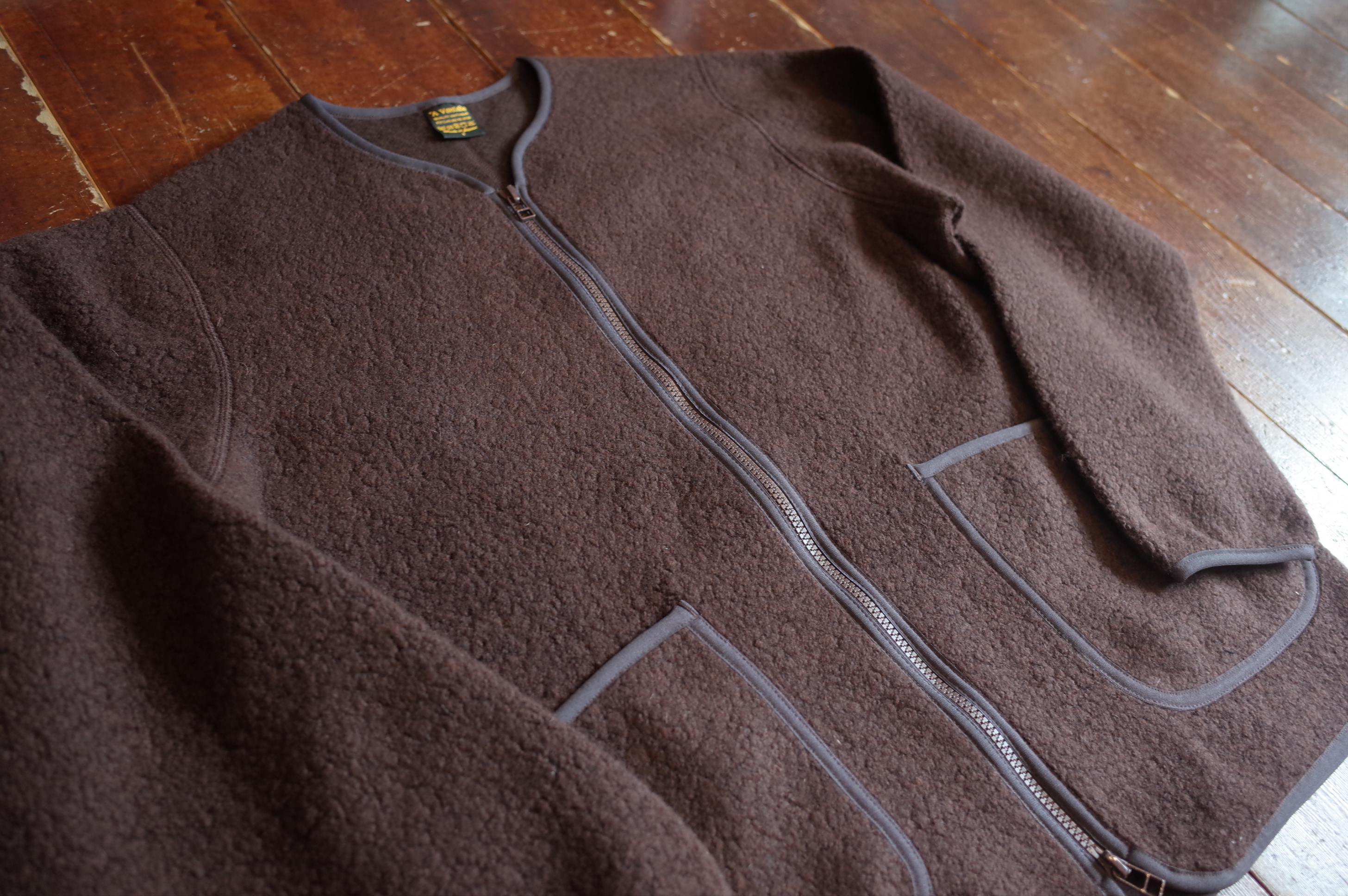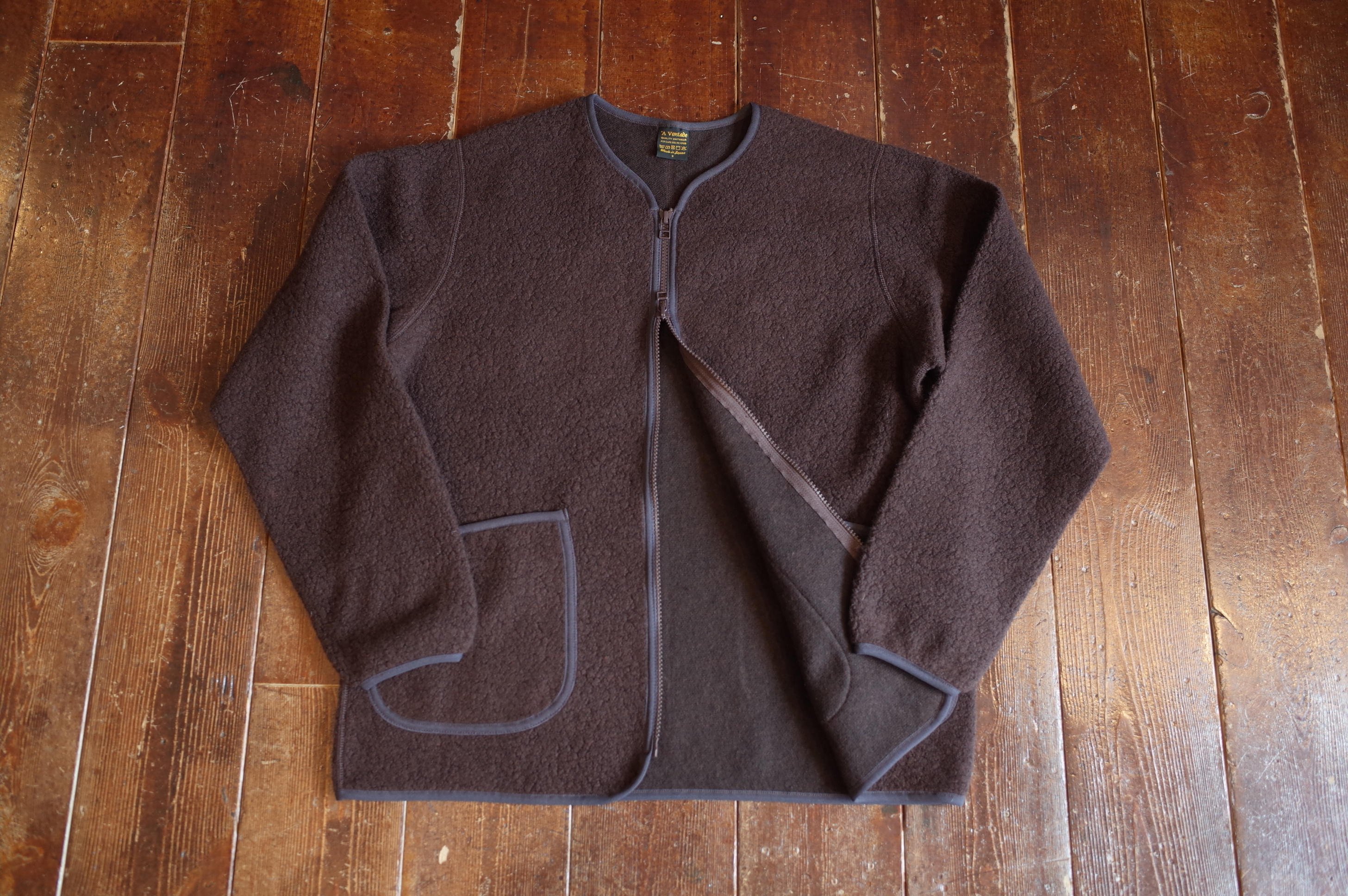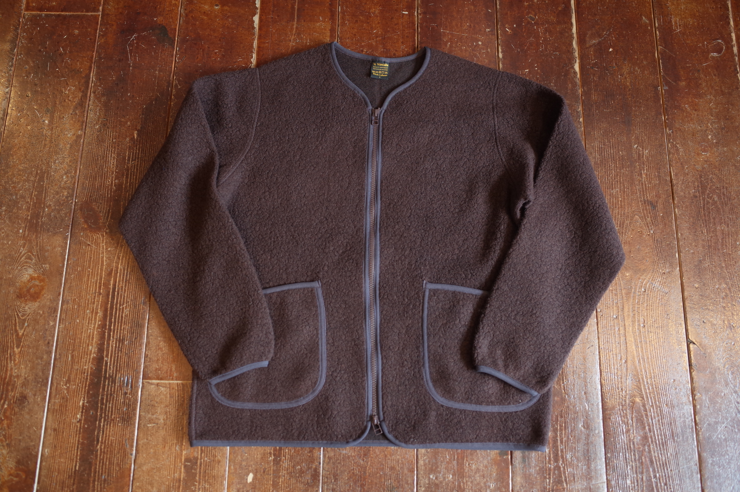ウールパイルを使用したジップカーディガンです、