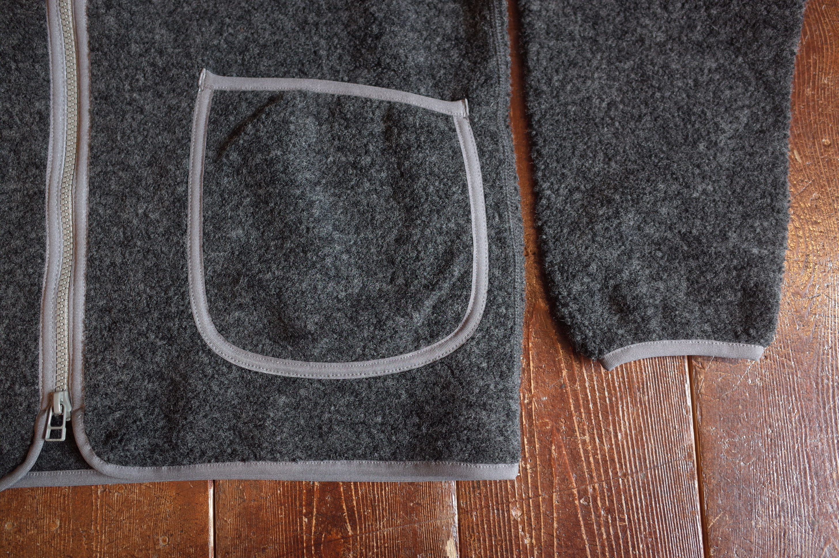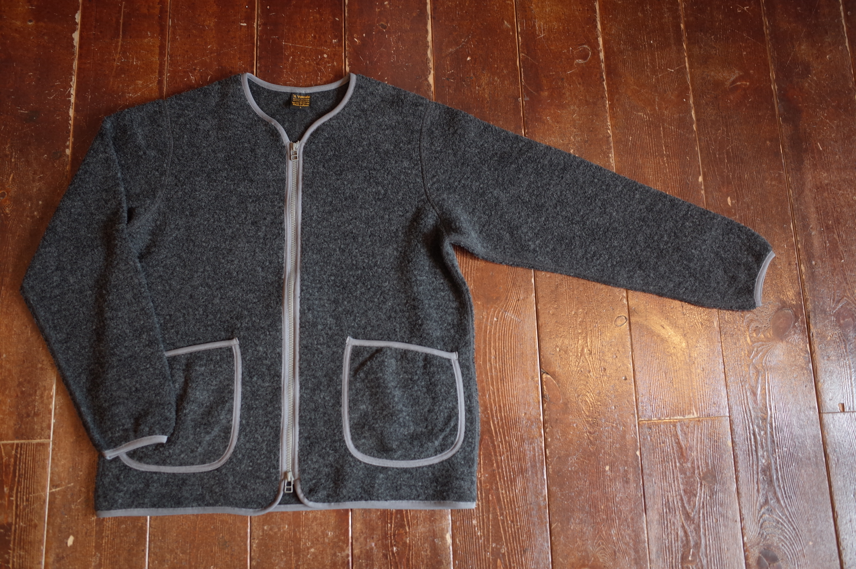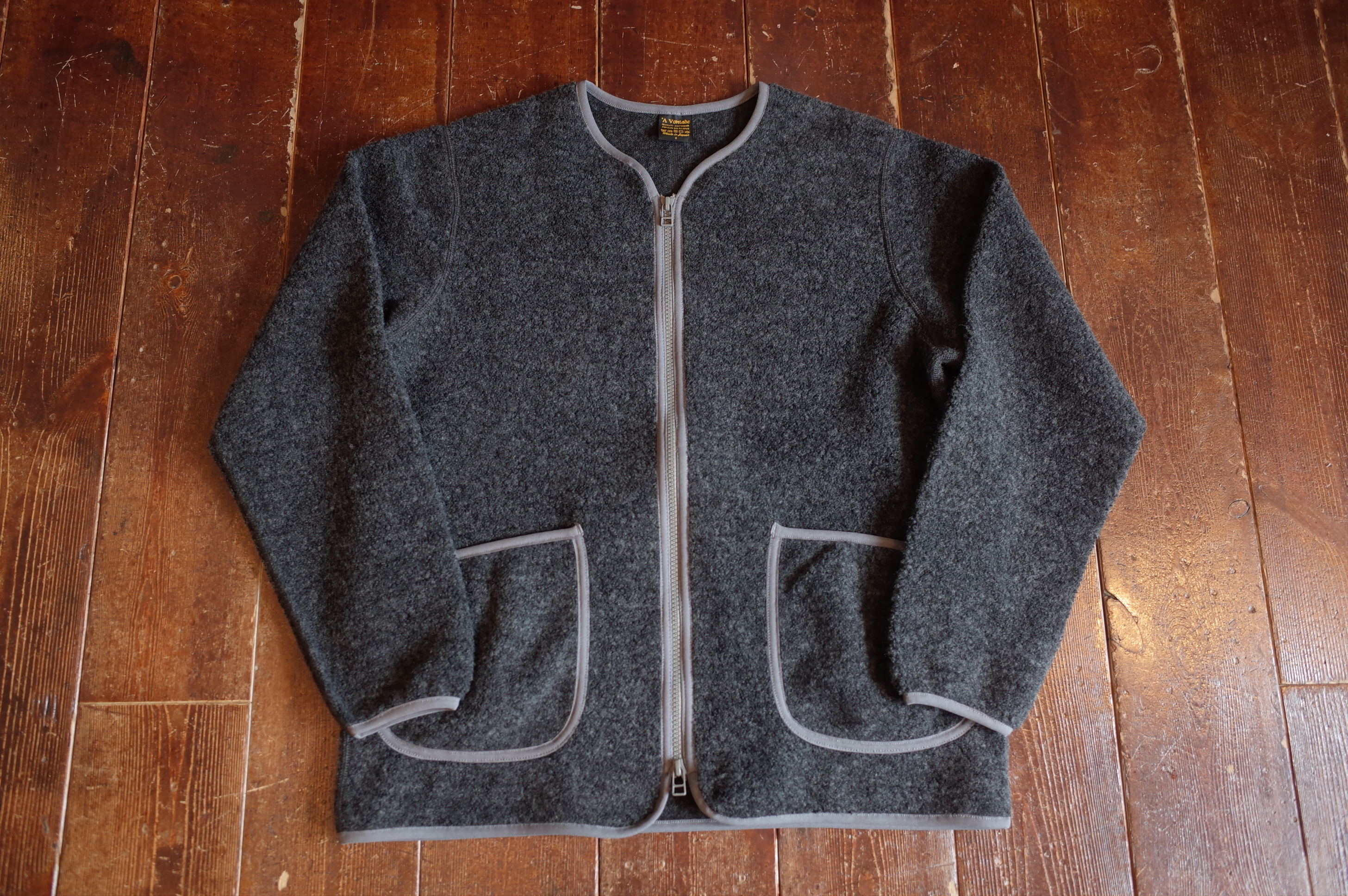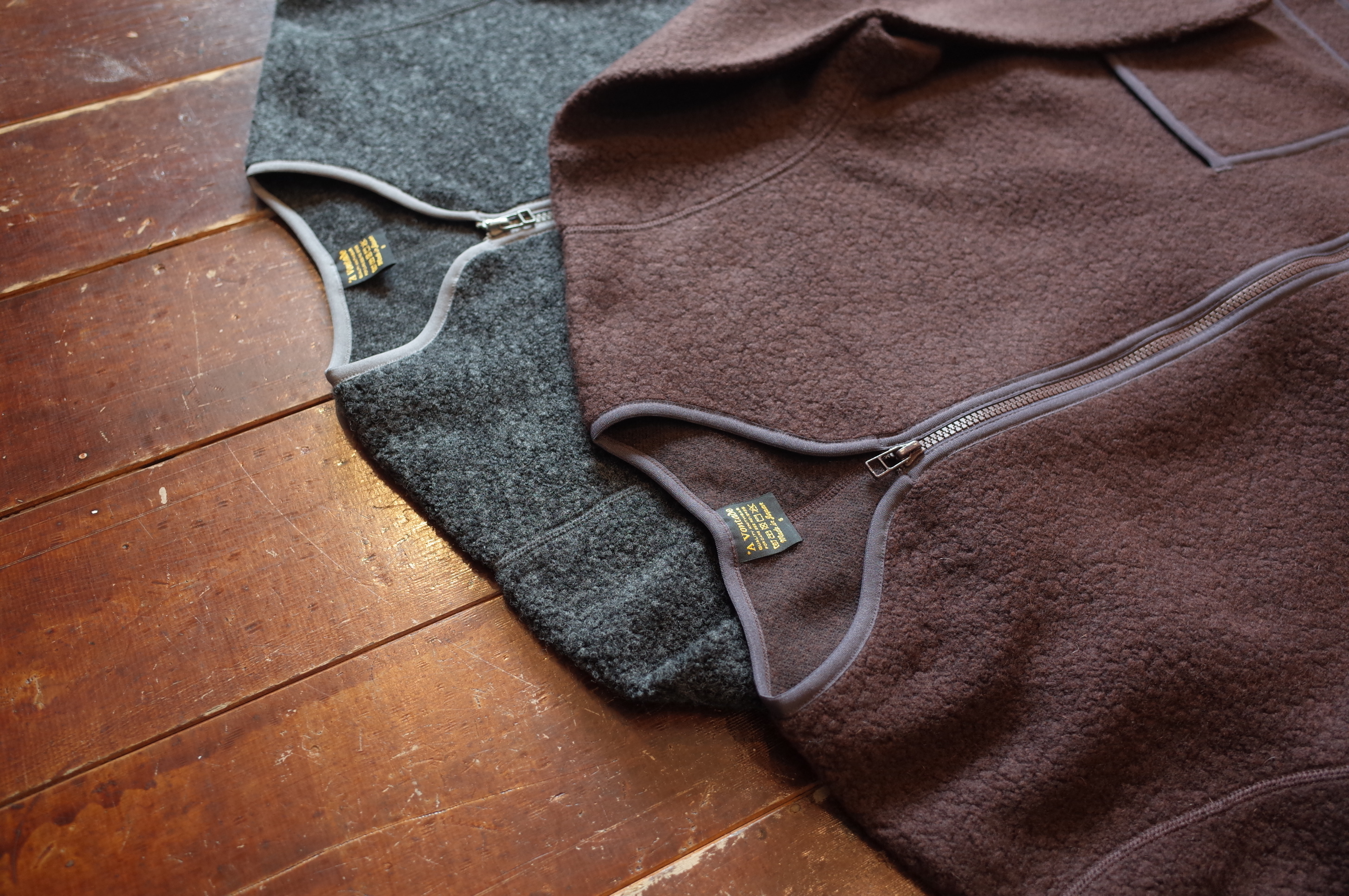 ウールパイルを使用したジップカーディガンです、