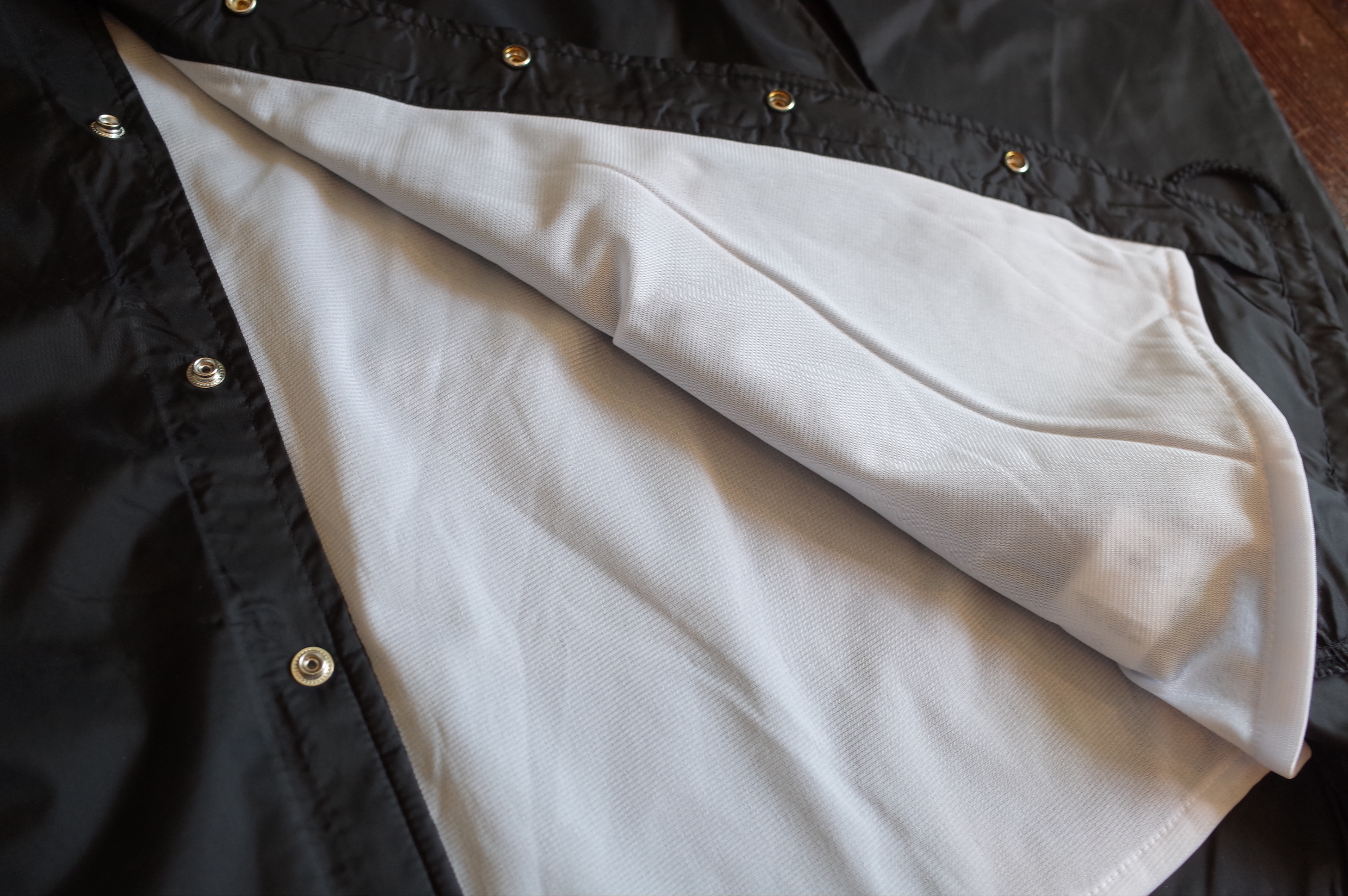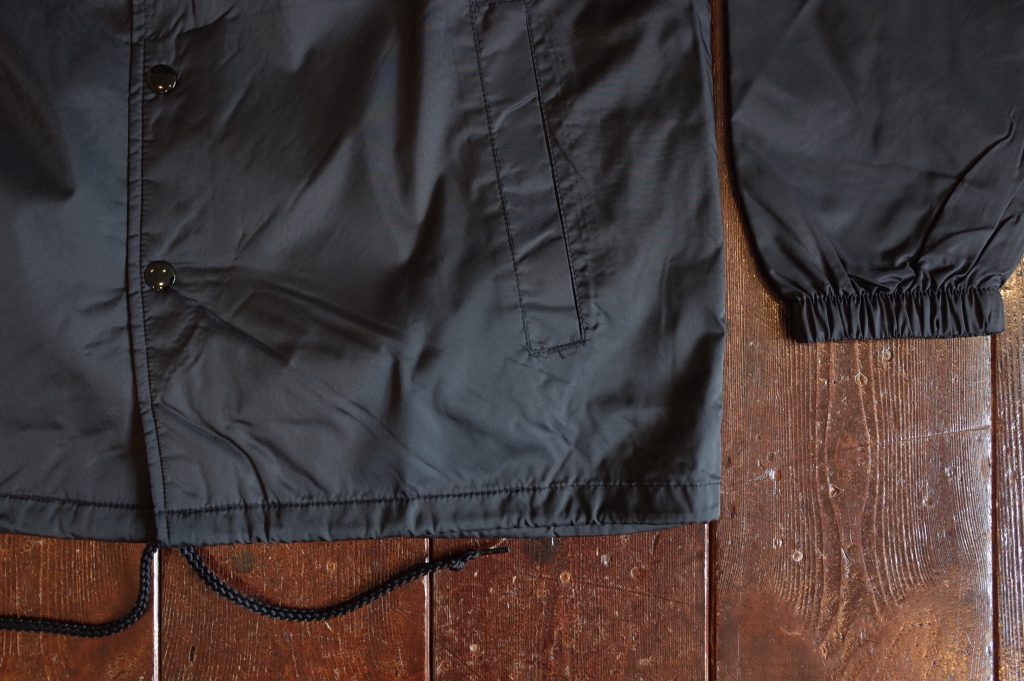 Nylon coach jacket with polyester lining.